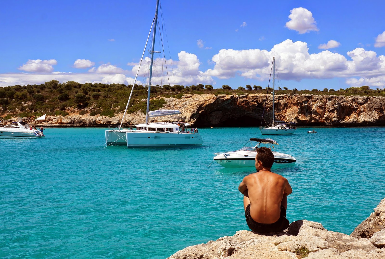 De vuelta a Colonia Sant Jordi, de donde se cogen los barcos, hicimos una pequeña parada en las famosas cuevas azules, donde el agua tiene un color azul eléctrico bastante bonito de ver, sobre todo si tienes gafas de natación o buceo para ver bajo el agua.